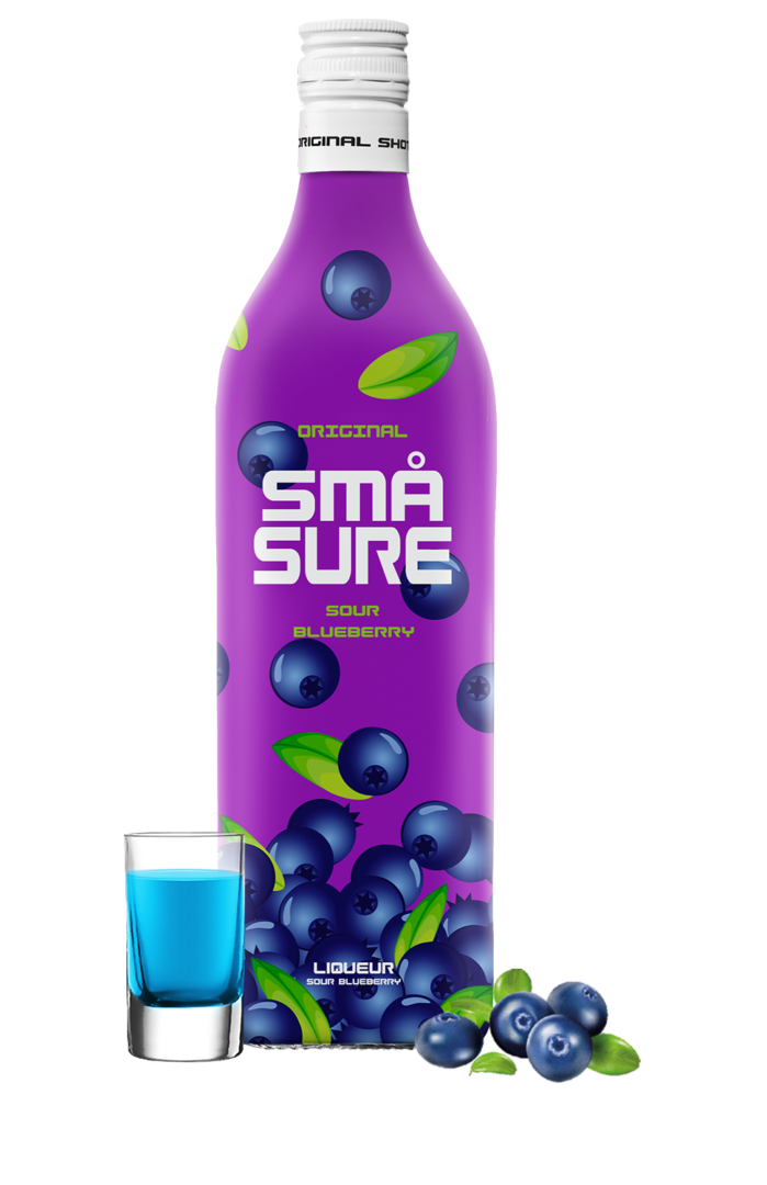 SMÅ SURE Sour Blueberry er et lækkert shot produceret på en base af ren vodka tilsat sour og en skøn forfriskende smag af solmodne blåbær. Kombinationen af sour og blåbær giver en sprød, syrlig smag med en let sødme – et friskt og lækkert shot, som kan nydes iskold shaket med is i et shotglas – som fx ”Sour Bomb” med energidrik eller som mixer i drinks og cocktails.