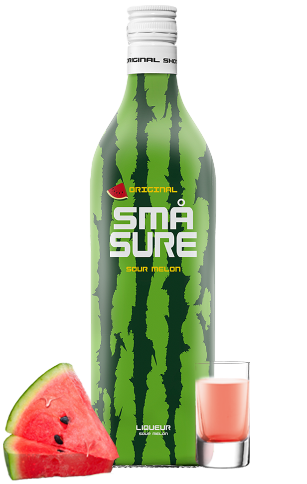 SMÅ SURE Sour Melon er et dejligt friskt shot produceret på en base af ren vodka tilsat en skøn forfriskende smag af saftige, søde meloner og sour. Kombinationen af sour og melon giver en lækker, syrlig smag med en let sødme – et friskt og lækkert shot, som kan nydes iskold shaket med is i et shotglas, blendet med is til en lækker slushice eller mikses til drinks.